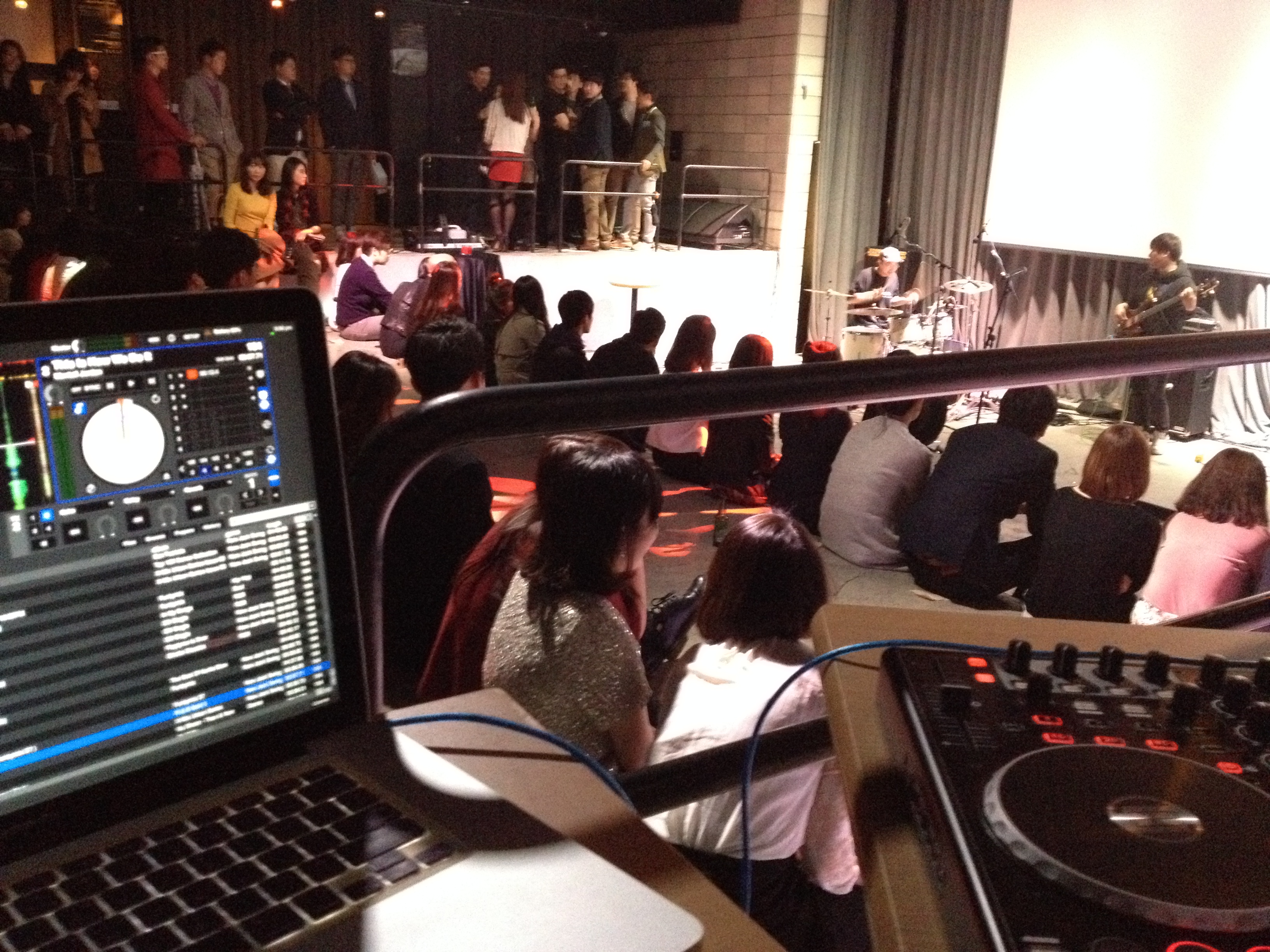 So this gig was a little interesting. The venue first, well its in the CGV building, its actually a pretty cool set up, big room and they have all the equipment etc needed to host live acts or shows and pretty decent equipment at that (its the same building as the beats by dre theatre) so as you can see in the photos it works well. Now the party itself, well it was more of a show than a party, having multiple acts and singers come up and perform, so people were sitting and watching. At the end of the show I was meant to come on and the show was to turn into a ‘club’ style party which was a fail. Multiple reasons why, firstly a show turning into a party, so getting people to get in the club mood after sitting down is difficult, location, it is not in a normal club area so people might have wanted to go to other areas, also the bar was kinda small and the drinks were on the normal to high side price wise, the tech crew packing down the main speakers and equipment as well didn’t help (giving the illusion that the night was about to finish) And then I only had a shitty controller (I wasn’t getting paid enough to bring in tables etc lol) so as you can imagine, once the party left people were headed straight for the door, it looked like everyone had already made up their minds to leave after the performances, so yeah, fail! On the bright side I finished early but still go paid the original amount! But yeah, playing music after people are performing live when you are not in a club… doesn’t tend to go down so well (I had similar experiences before)