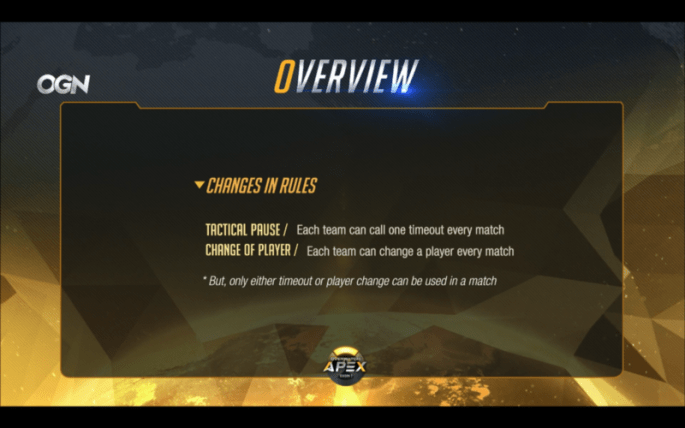 While the tactical pause was introduced in the previous season, a new substitution rule has now been implemented in season 3. The new rule allows a team to either take a tactical pause or to sub out a player in between sets. Because only some teams have more than 6 players, each team can only use one or the other to keep it fair. This new rule change opens up a lot of options for teams now. Being able to bring in a player with a different character pool allows for changing team compositions on the fly or allows teams to bring in a ‘specialist’ for a map or being able to sub them out after the early sets (the control map could be specifically targeted here). To a lesser degree it can also be used as a tool to blood new players into the competitive scene and give them a taste of the big stage. This is an exciting new rule change and it will be interesting to see how teams utilize this going forward.